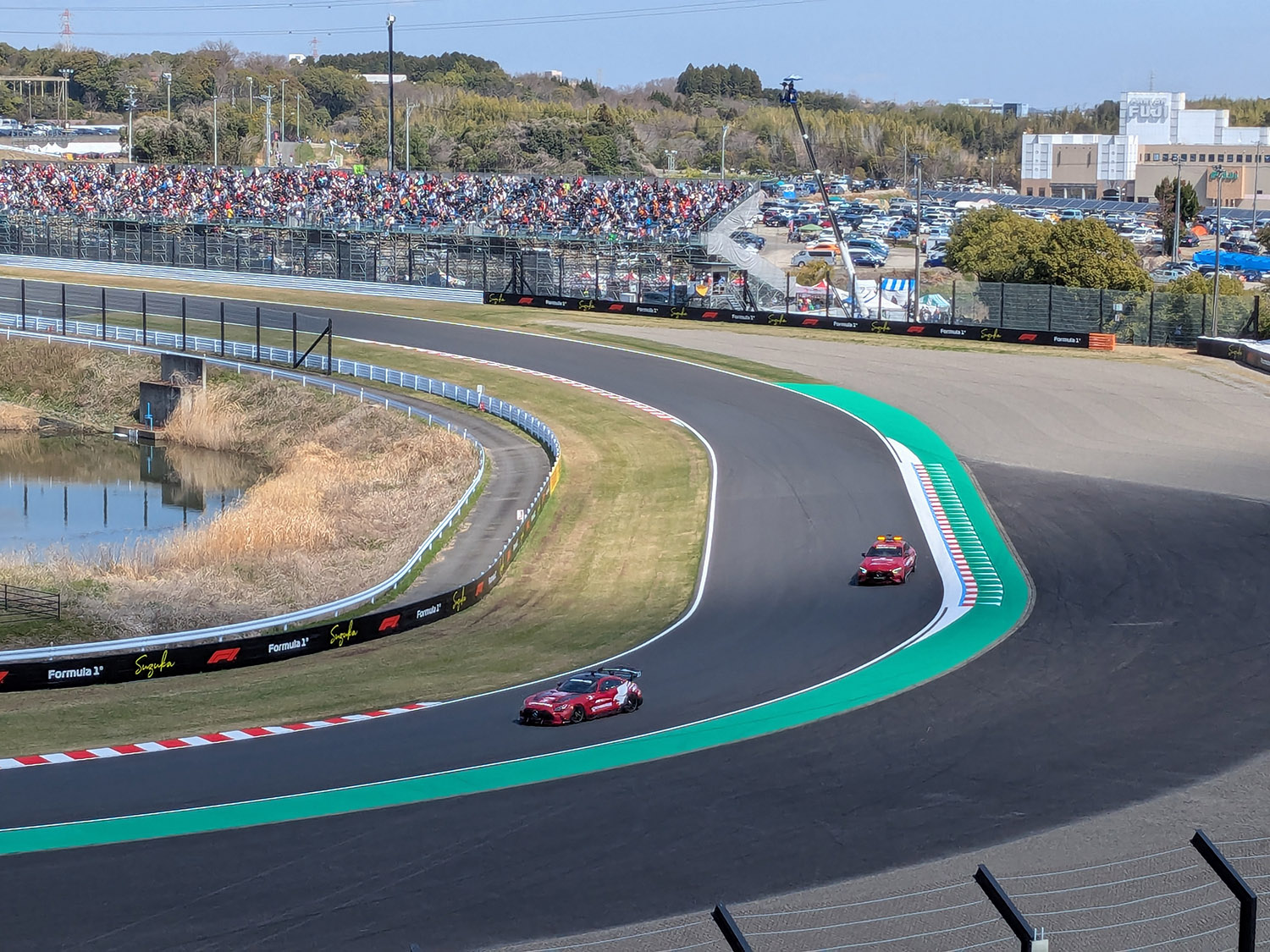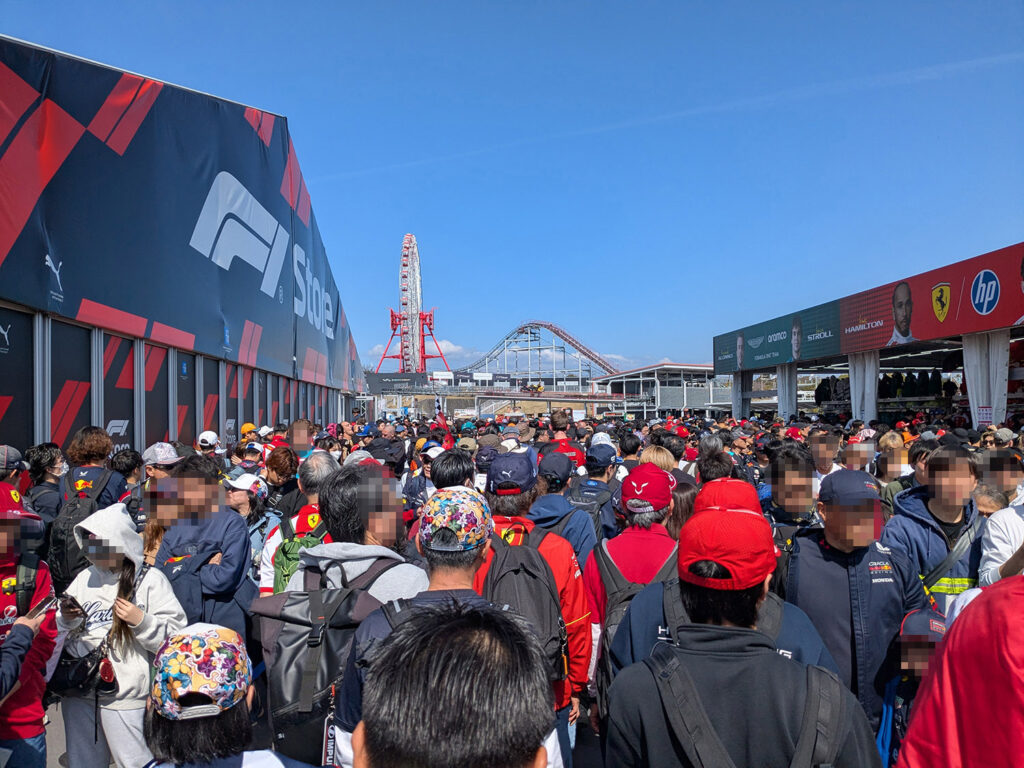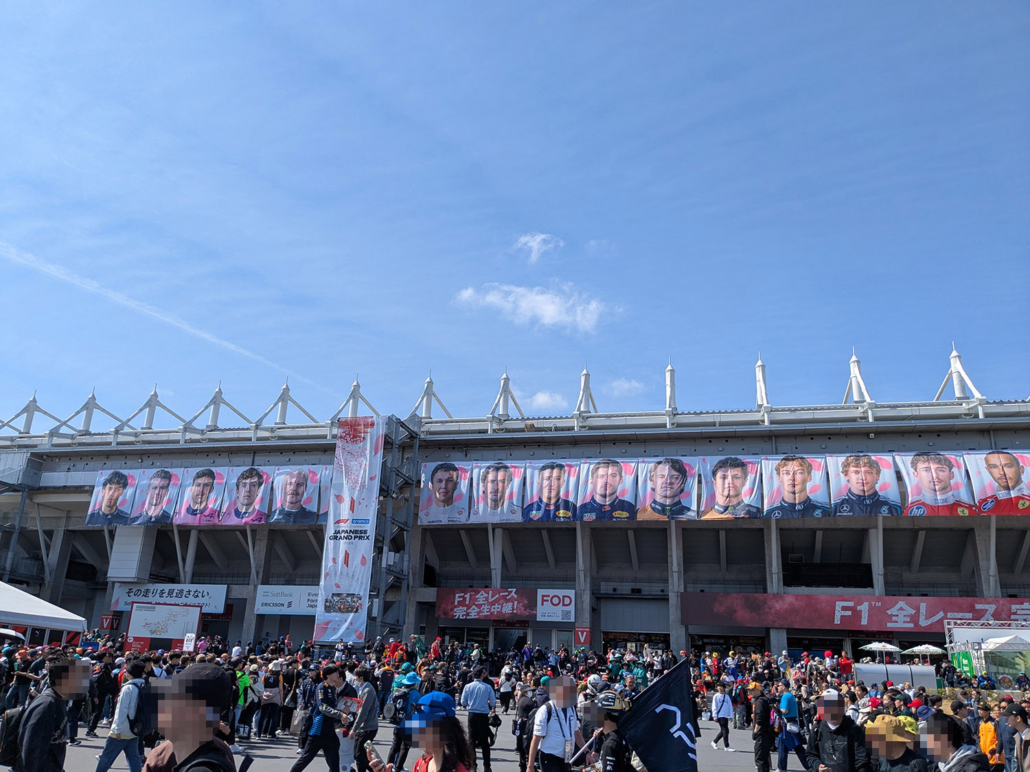 何時くらいに着いたのかな。ゆっくり目に行ったので11時半くらいにグランドスタンド裏に着。いやはやとんでもない人です。金曜も凄かったですが当然ながらそれ以上。本当にF1人気が凄い事になってきましたね・・まあ去年のチケット販売のタイミングは角田君がまだどうなるか分からなかったというのもありますが、写真にもありますようにフジテレビが相当力を入れてきているのもありますし来年どうなるかはとても興味がありますね。もしかしたら角田君がまた復活して走るかもしれませんので。