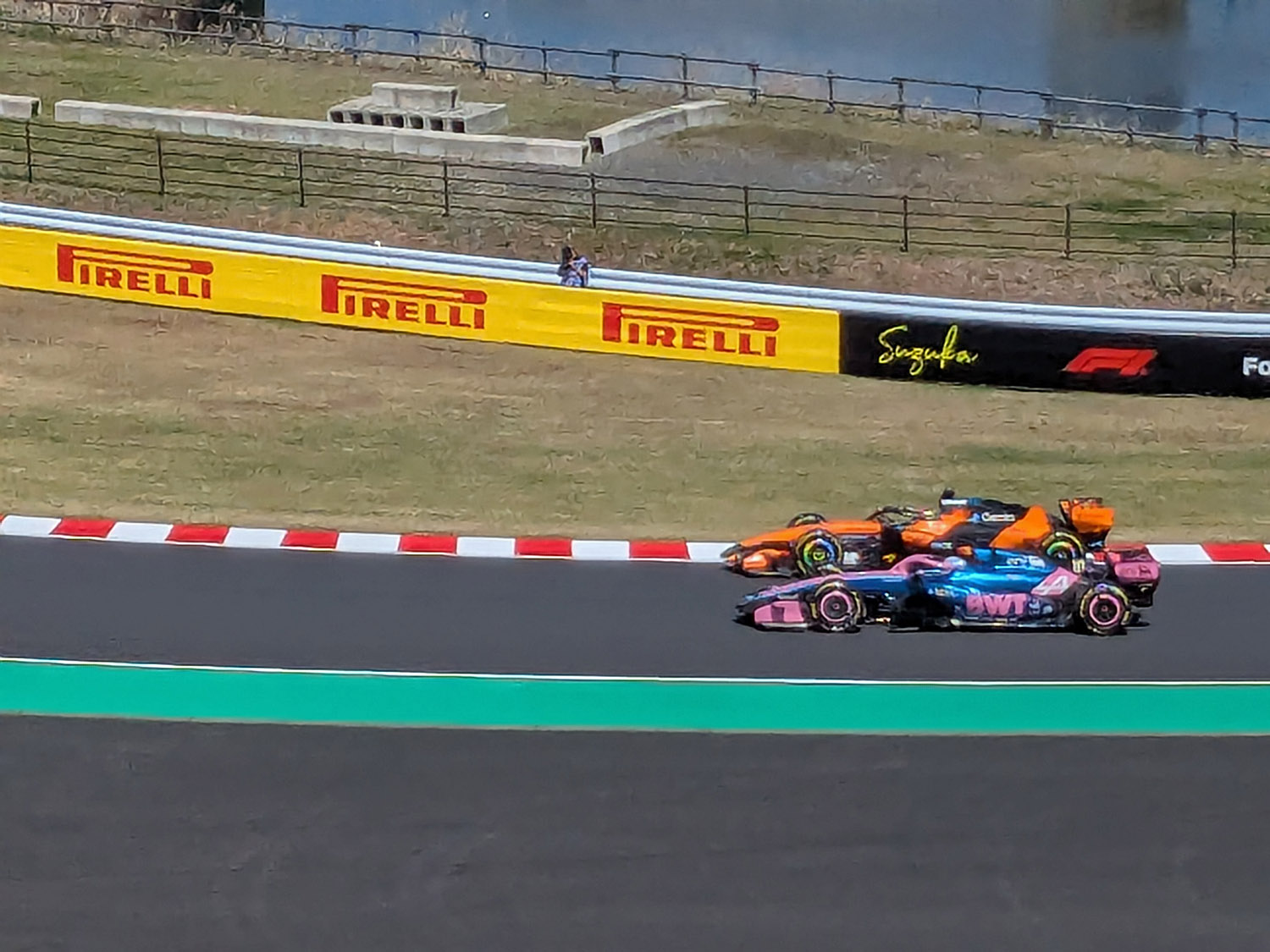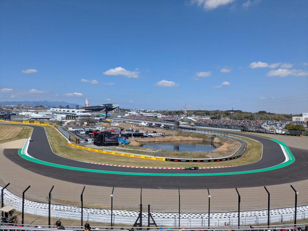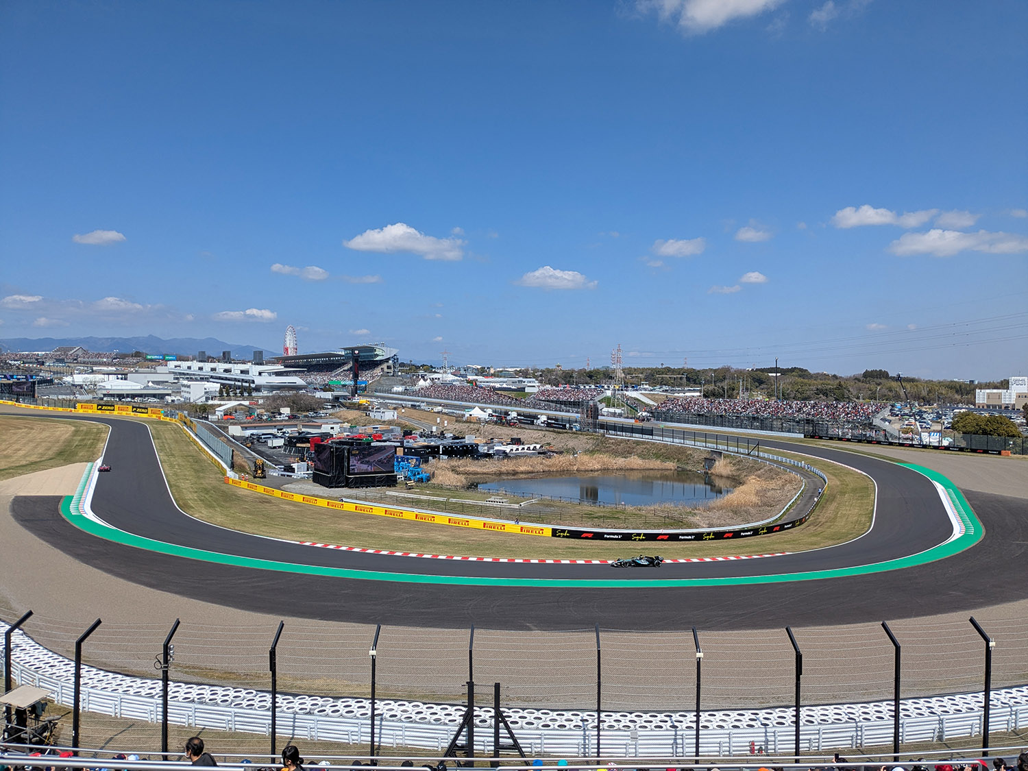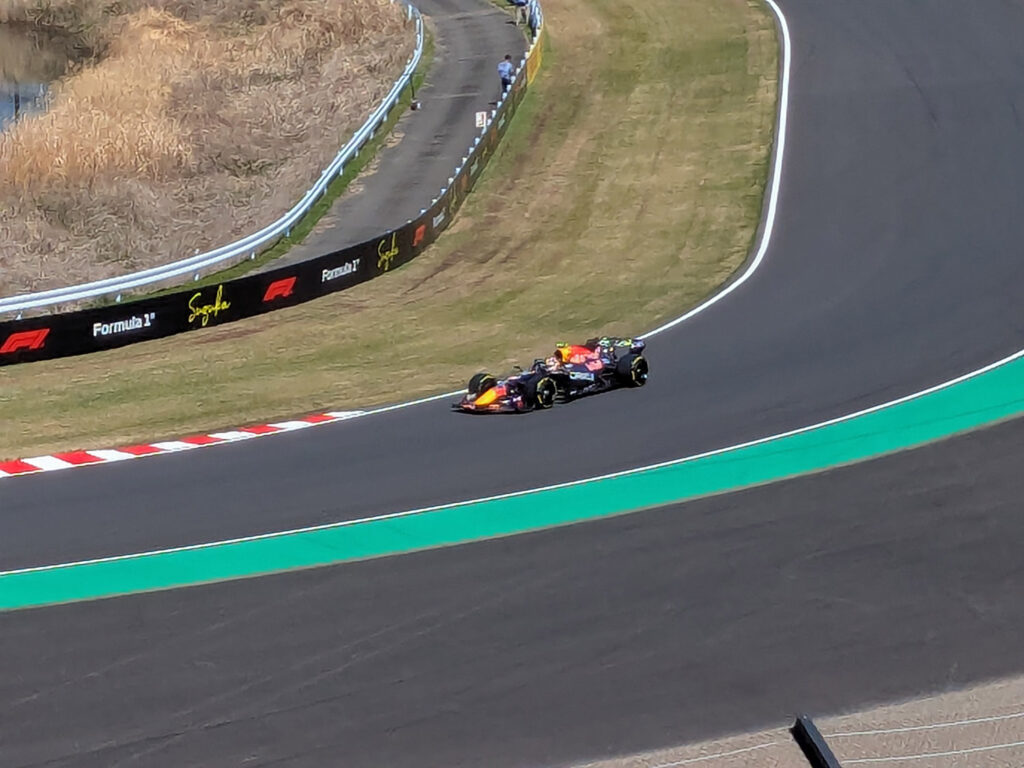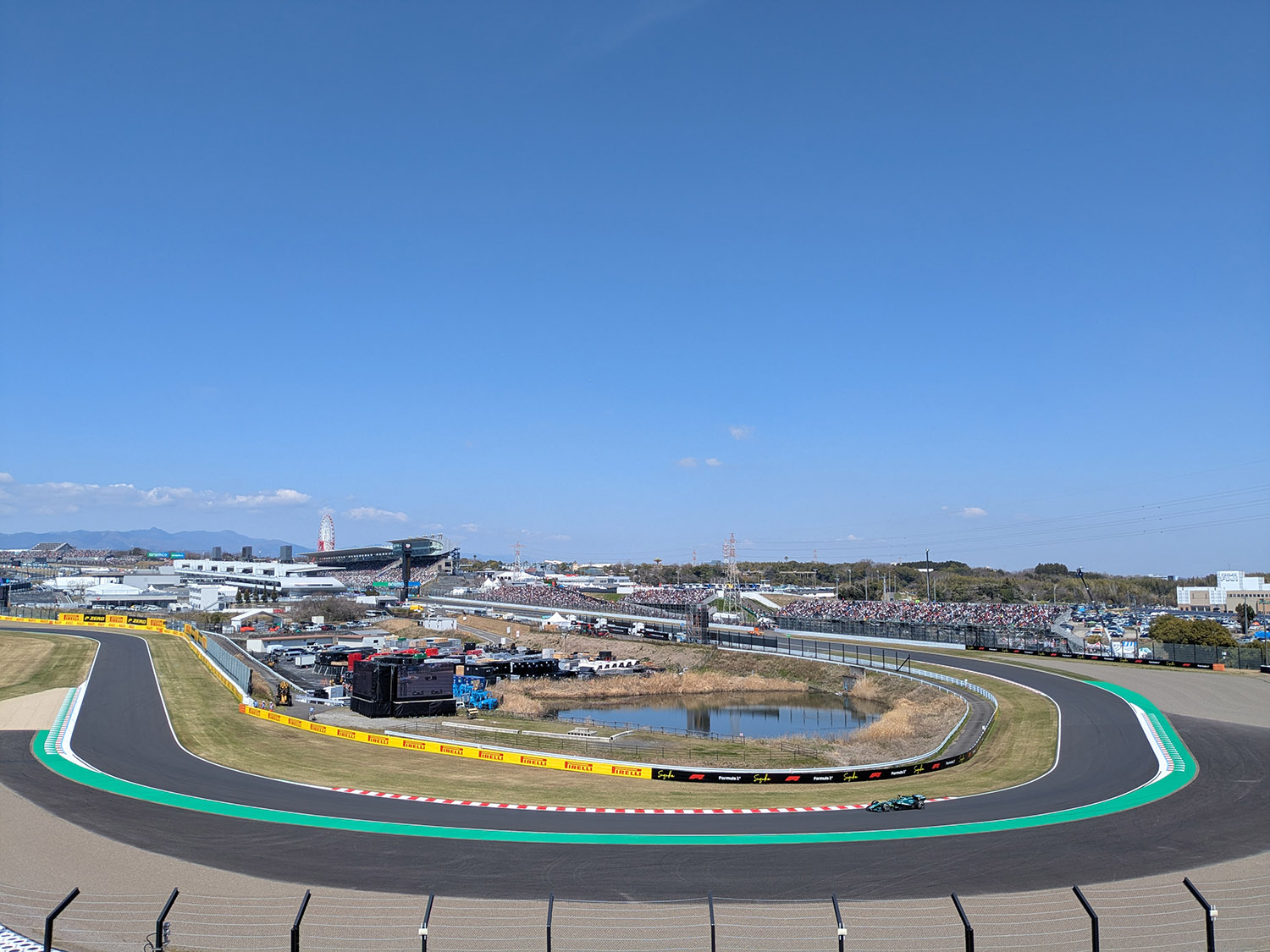 そしてFP1が始まります。しょぼいスマホで適当に写真を撮ります(笑)。いやー今年のF1も散々色々と言われていますがやはり生で見ると最高ですね。コーナーリング速度は確かに落ちたような気がしますが加速が凄いです。この辺りは電気アシストの影響もあるでしょうが。そしてPUの音ももっとモーターっぽい音がするのかなと思ってましたが昨年同等かちょいうるさくなったかな?と言う感じに思いました。フォードPUが一番大きな音を出していましたが感覚的に昨年のホンダPUみたいな音でした。フェラーリPUはかなり静かでしたね。