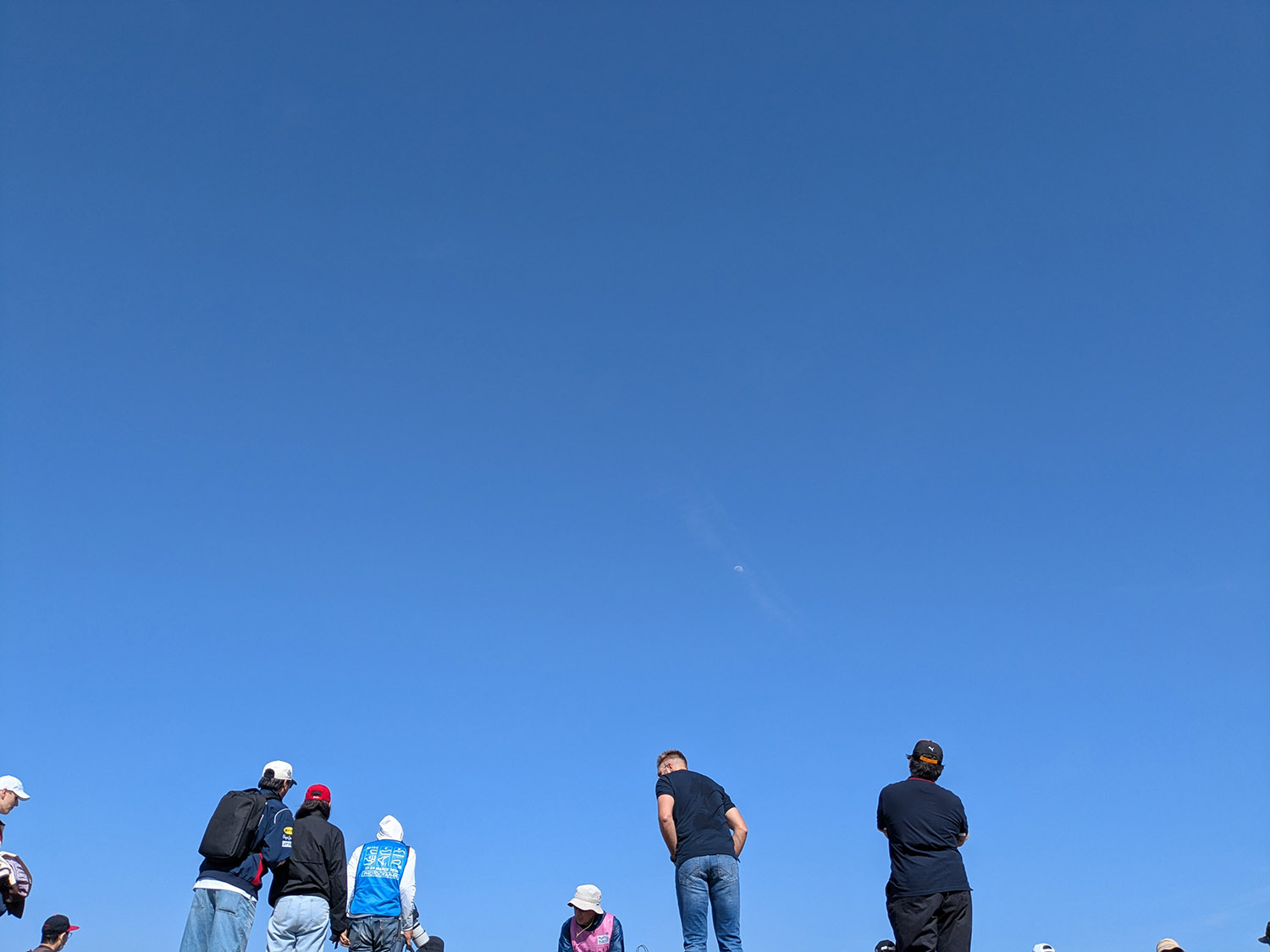 観客席上段は通路になっていましたが結構立って見てる方も多かったです。というのも座る所が結構少ないんです。それだけ多くの方が来られていたということなんです。空がホントキレイでした。