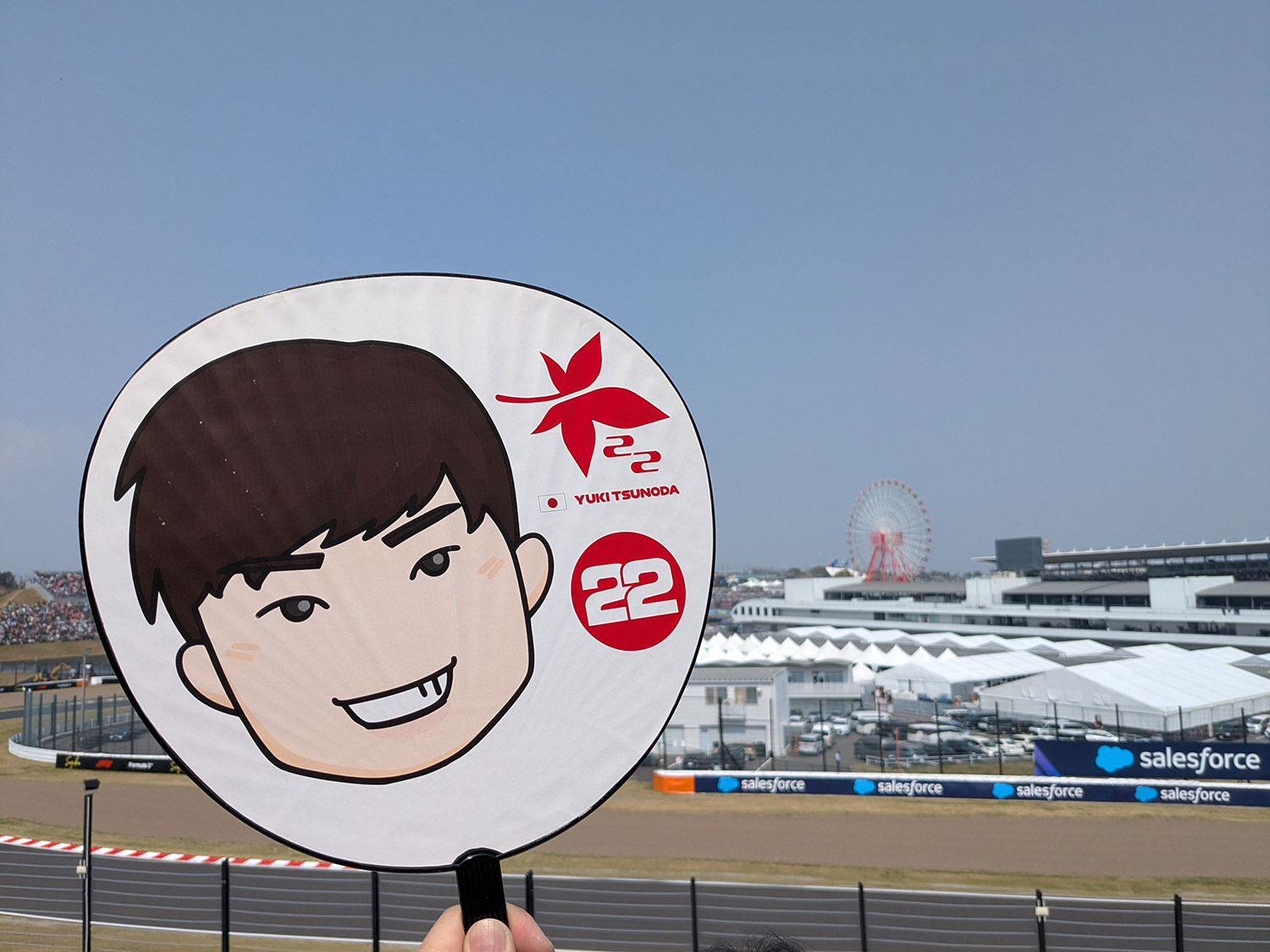 角田裕毅応援席で見るからにはこちらも持っていかないと、ということで角田君イラストをあしらったウチワを今年も持ってきました。