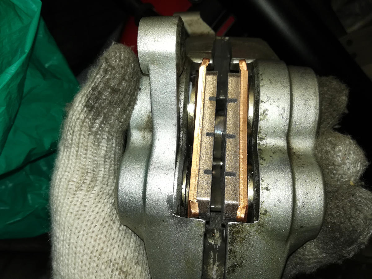パッドを固定は出来たのですが、パッドをキャリパーに組み込む際のクリアランスがどうも微妙。かなりキッチキチで引っかかってるような感じ。