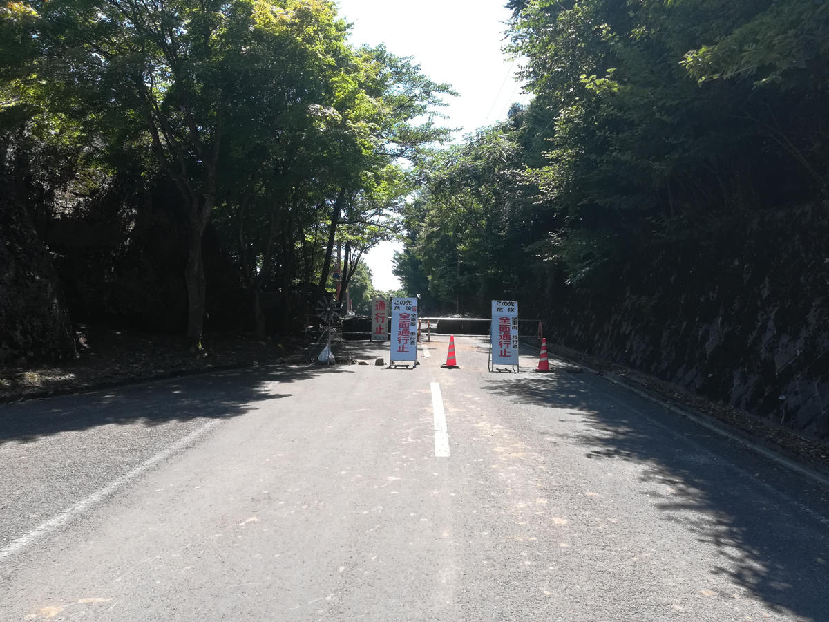 山頂展望台までもう少し・・というところで通行止め。どうやら土砂崩れ的な事ッぽい感じでした。仕方ないのでここでバイクを停め絶景を写真で撮ったりしつつ休憩します(笑)。