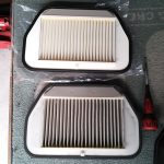 ちなみに、エアクリーナーエレメントはクリーナーボックスの4箇所で8mmのボルトで止まっています。それを外せばフィルターにアクセスできますが、バッテリー固定金具とフェンダーの間に挟まって上部蓋が上手くやらないと外れません。試走した感じでは特に変わった感じはありませんが、こういうのは気分モノですので、マメにメンテナンスしてあげましょう。