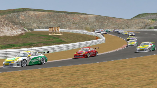 決勝スタート前。今回も赤いコカコーラカラーのRSRで参戦。2番手にRodgersさんです。1コーナーが左コーナーなのでこのグリッドは若干不利な気がしましたが、その後の右でインに入っていれば前で抜けられるかもしれません。
