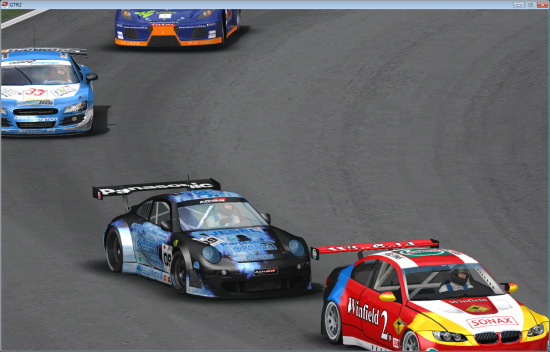 予選では車高辺りのセッティングを少し弄ってみて、多少マシになったかな?という感じで何とか(ホントに一発タイムですが(笑))49秒台に入る事が出来て予選4番手から。PPは48秒台という恐ろしいタイムを出されていたHitMさん。ここ最近毎夜鯖さんに来られていますが、かなり長い間レースから遠ざかっておられたんじゃないでしょうか・・。それでも恐らくGTR2界では最速だと思われるHitMさんは、ここ数レースで確実に速さを取り戻されてきているような感じです。レースではブッチギリで消えていかれる事だと予想してました(笑)。
