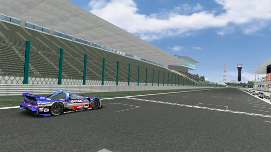 1コーナーから。このリーダータワーが09年鈴鹿を物語る上では重要ですよね。この部分は実際に鈴鹿に行った際に撮っていた写真を使って作りました(笑)。上部のDENSO部分は白色LEDっぽく見せるために新規に作ってますが。最終コーナー奥のALPINE看板横のSONY看板も勿論追加しました。