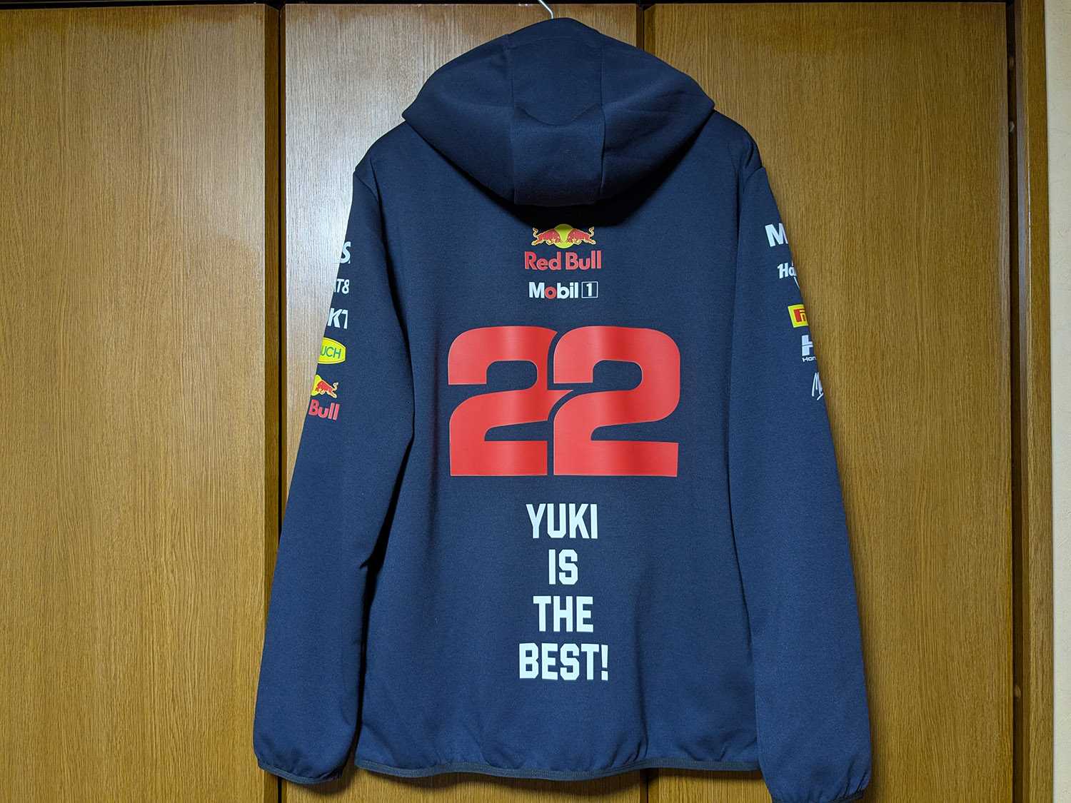 とりあえず紺色RBRバージョンの方だけ先に作っておくか、と自宅で作業して出来上がったのがこちら。極力ぱっと見はオフィシャルっぽく作って背中にデカく22をあしらいその下に「YUKI IS THE BEST」の文字を入れて完成させました。遂に角田君がこの色のマシンに乗るんだ・・そんな時が遂にやってくるんだ・・と一人で感慨に耽っていました(笑)。