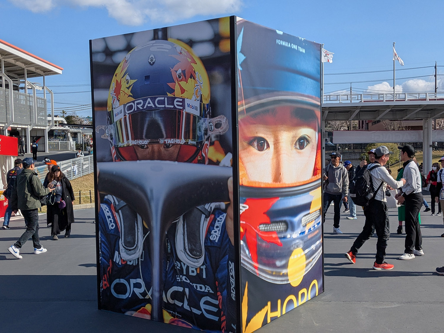 そういう意味ではこの移籍劇で大変だったのは鈴鹿サーキット側も同じだったでしょう。何もかもRB角田という形で準備していたものを全て出来る限りRBR仕様に変更しなければいけません。しかも超短納期で(笑)。それをやり遂げられたんですから本当に凄かったです。このグランドスタンド裏に掲げられたドライバー横断幕も前日?に届いたらしいですから。お店周りのボードもRBR角田君に変わってましたから本当にお疲れ様でした、と言う感じです。