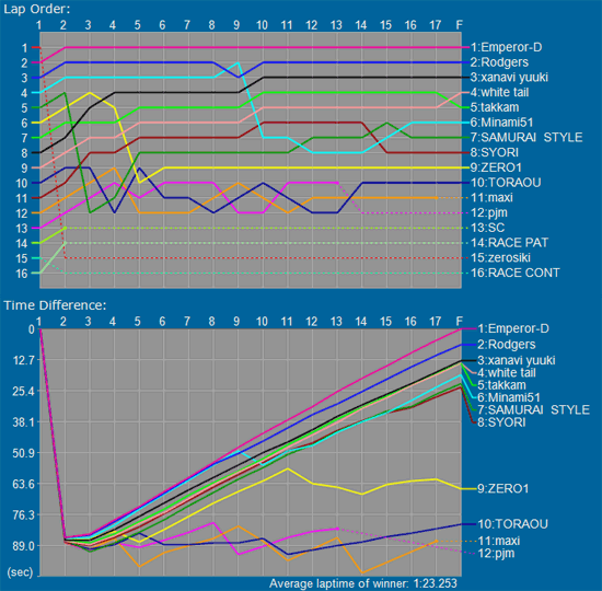 みなみ風さんどうもお疲れ様でしたー。レースは大変楽しませてもらいましたよー。完全に力負けしている状況でしたが;;、何とか必死で抵抗させてもらいました(笑)。また今回のようなバトルが出来ればいいですねー。
