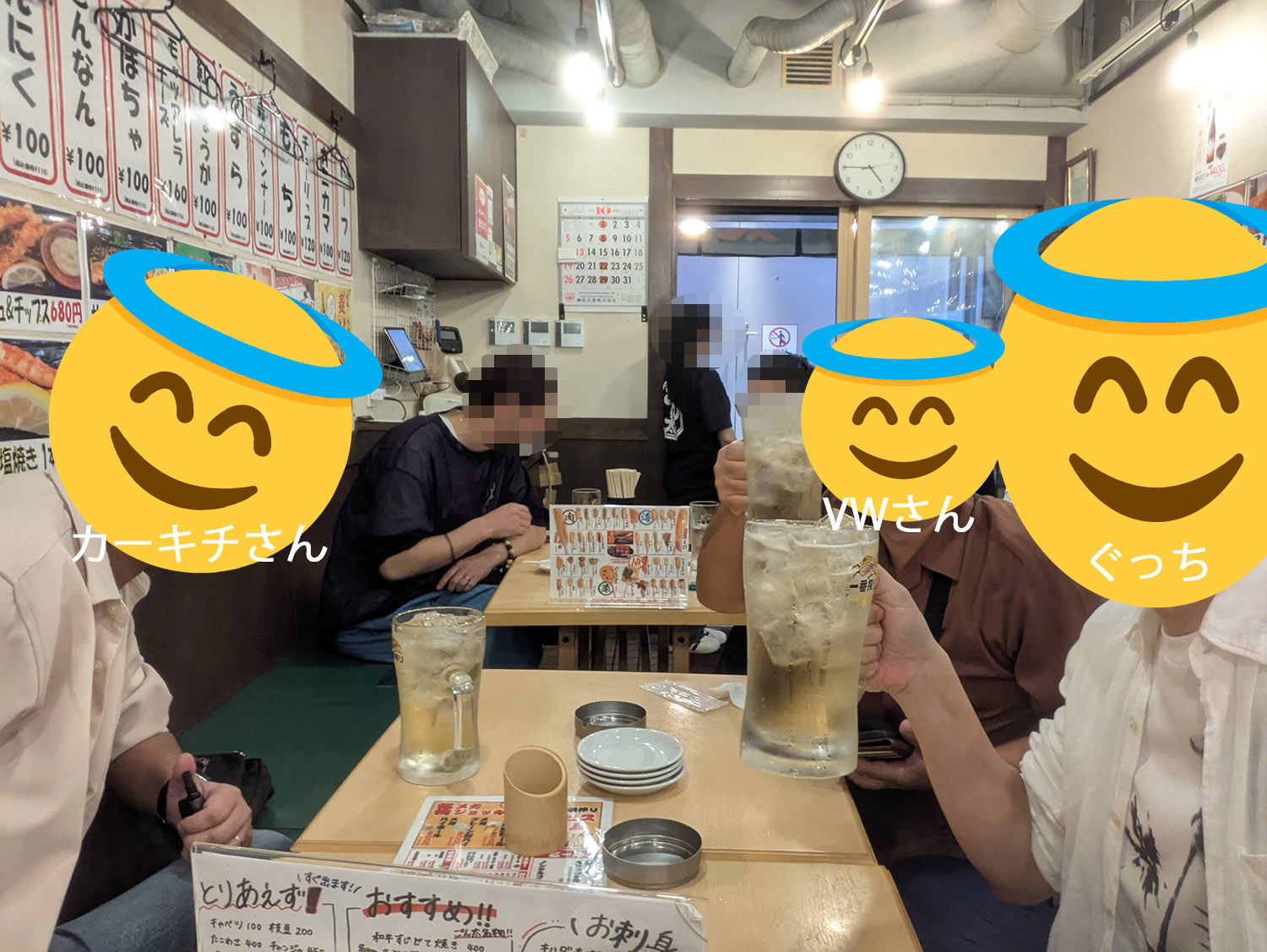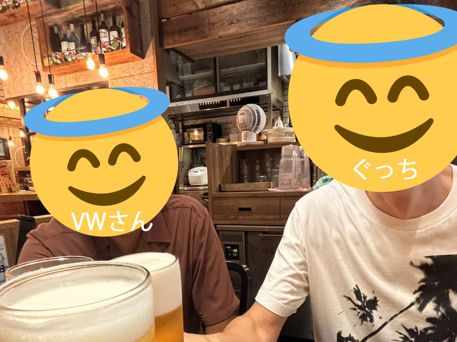 ちょうど14時半前くらいにジョーシン前までに到着しましたが、一般の部の京都代表決定戦が15時から予定されていたのでまだ少し時間あるなと思い、何か飲みながら休憩したいなとウロウロします。その時たまたまX(旧Twitter)を見ると、とらふぐさんがジョーシン前の餃子バルだったかのお店に居るのを発見。長崎から岡山(だったかな)に引っ越されてきたDon-3rdさんとVWさん(VWさんは今晩Donさん宅に泊まるそう)が一緒におられるようだったのでアポ無しで突撃。VWさんの私を見た時の驚いた顔が面白かったです(笑)。